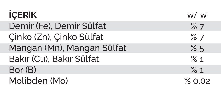 Ürün Tipi: Mikro Besin Maddeleri Karışımı