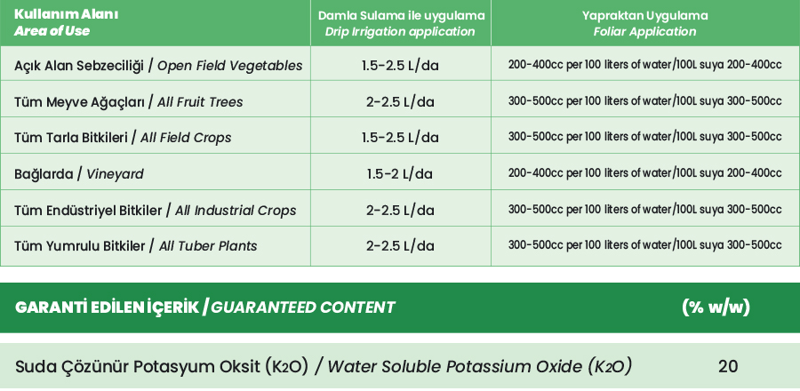 Grow Max SWELL, özel tekniklerle üretilmiş, yüksek kalitede ve oranda potasyum içeren yüksek çözünürlüğe sahip sıvı bir gübredir. Potasyum, bitkilerde metabolik, fizyolojik ve biyokimyasal fonksiyonlarda hayati bir role sahiptir. Bitki tarafından sistemik bir şekilde emilen Grow Max Swell hızlı bir biçimde bitki köklerine ve yapraklarına taşınmaktadır. Meyve kalitesine zararlı olan ve yüksek oranda azot içeren diğer potasyumlu gübreler gibi azot içermez. Potasyum bitkide; enzim faaliyetlerine, fotosenteze, bitki besin maddelerinin mobilizasyonuna, fotosentezin son ürünlerinin taşınmasına yardımcı olur. Protein seviyesini yükseltir. Şeker oranını yükseltir, mineralce zengin besin değeri daha yüksek kaliteli ve iri meyvelerin oluşmasını sağlar. Tat, aroma ve renk bakımından meyve gelişimine katkı sağlar. Meyvelerde homojenlik sağlar. Verimi artırır. Turgor basıncını düzenler. Su kaybını ve dolayısıyla solmayı önler. Kök gelişimini olumlu etkiler ve dolayısıyla yatmayı engeller. Biyotik strese (soğuk vb.), hastalıklara karşı bitki direncini ve depolanma dayanıklılığını artırır. Kalite artırıcı etkiye sahiptir. Daha erken olgunlaşma sağlar.
