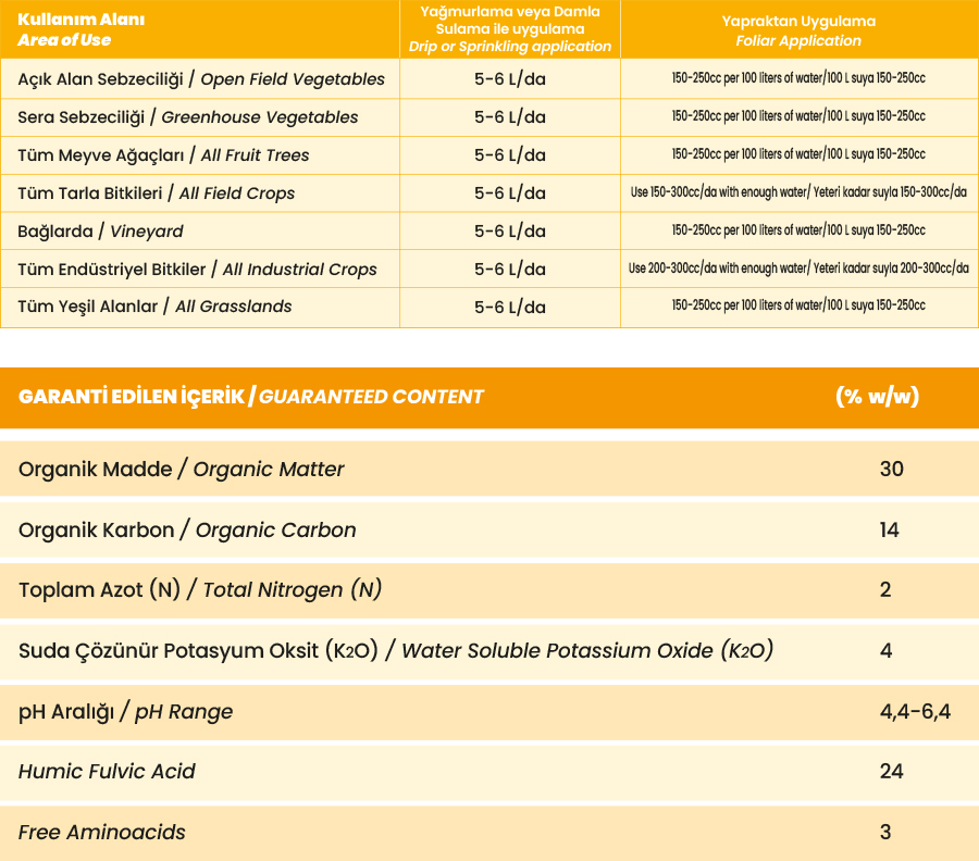Özel üretim teknikleri kullanılarak üretilen yüksek kalitede benzersiz bir üründür. Yüksek oranda organik madde, organik karbon, nitrojen, potasyumdan oluşur. Toprağın organik madde miktarını artırarak toprağın canlılığını da artırır. Toprak mikroorganizma faaliyetleri artar. Toprak pH’ını düzenler. Toprağa bitkinin gelişebileceği ve maksimum fayda sağlayabileceği bir yapı kazandırır. Düzenli olarak uygulandığında rizosfer bölgesinin pH’ını bitkinin istediği pH düzeyine ayarlarlar. Küçük molekül yapısı sayesinde bitki bünyesine hızlı ve kolay alınır. Bitkinin kök gelişimini sağlayarak kökün saçaklı ve güçlü olmasını bu sayede de kök hastalıklarına karşı dirençli olmasını sağlar. Fulvik asit, klorofil gelişimini artırır ve böylece, yapraklar yüksek klorofil içeriği nedeniyle koyu yeşil renk elde eder. Fotosentezi hızlandırdığından dolayı bitki verimini artırır. PEP Organik, enzim aktivitesini artıran benzersiz bir üründür. Pestisitlerle ve kimyasal gübrelerle karıştırılabilir. Çökelme yapmaz. Yaprak uygulamalarında karışım içerisinde bulunan diğer besin maddelerinin etkinliğini arttırır. PEP organik pestisitlerle uygulandığında, içeriğindeki yüksek oranda fulvik asit nedeniyle pestisitlerin bitki üzerindeki fitotoksisitesini azaltır.